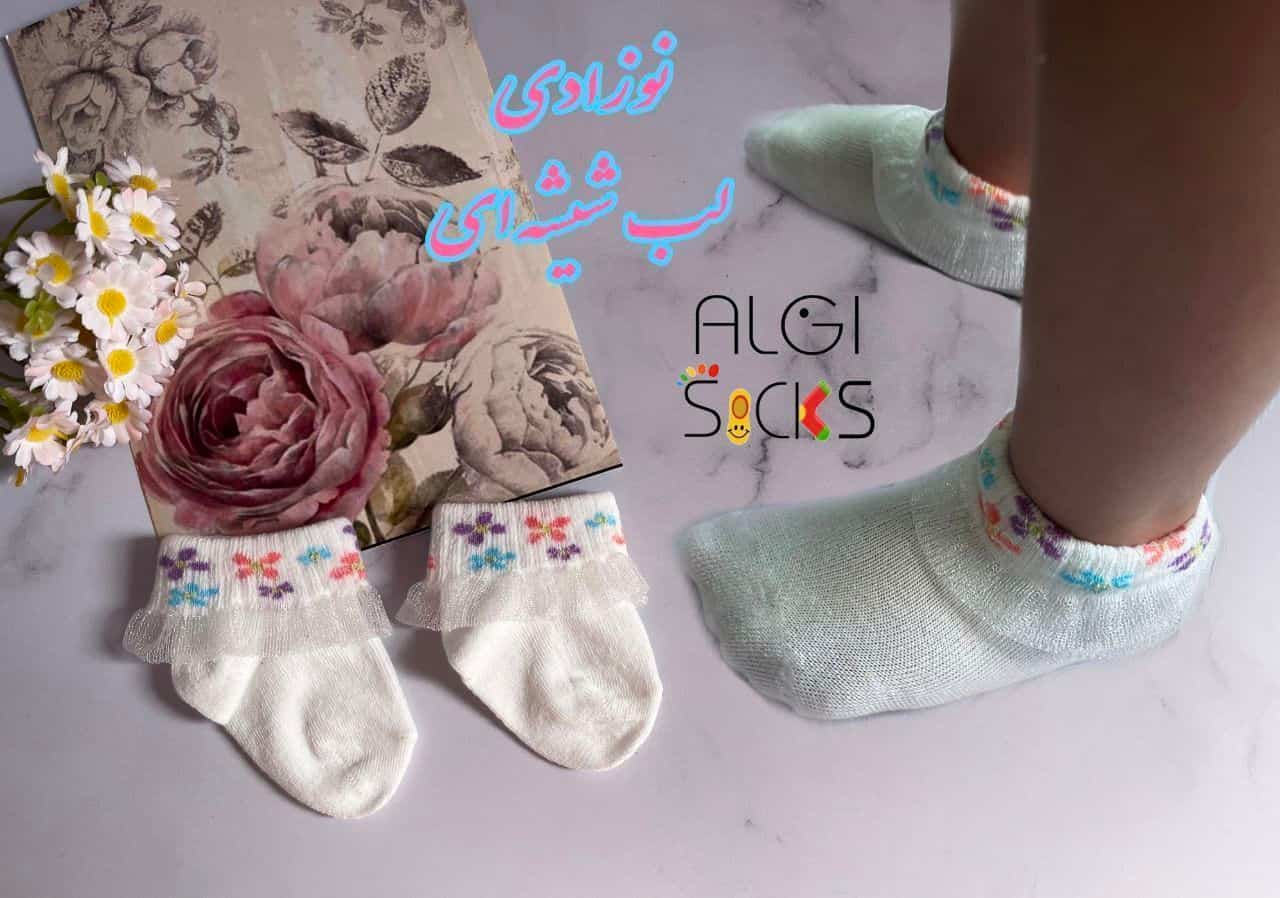 جوراب بچگانه سایز صفر نوزادی طرح لب تور