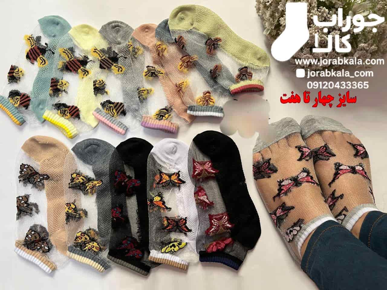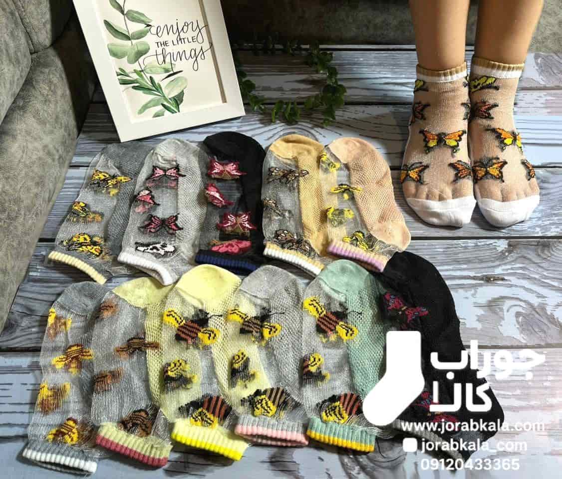 جوراب بچگانه دخترانه فانتزی شیشه ای طرح پروانه و زنبور