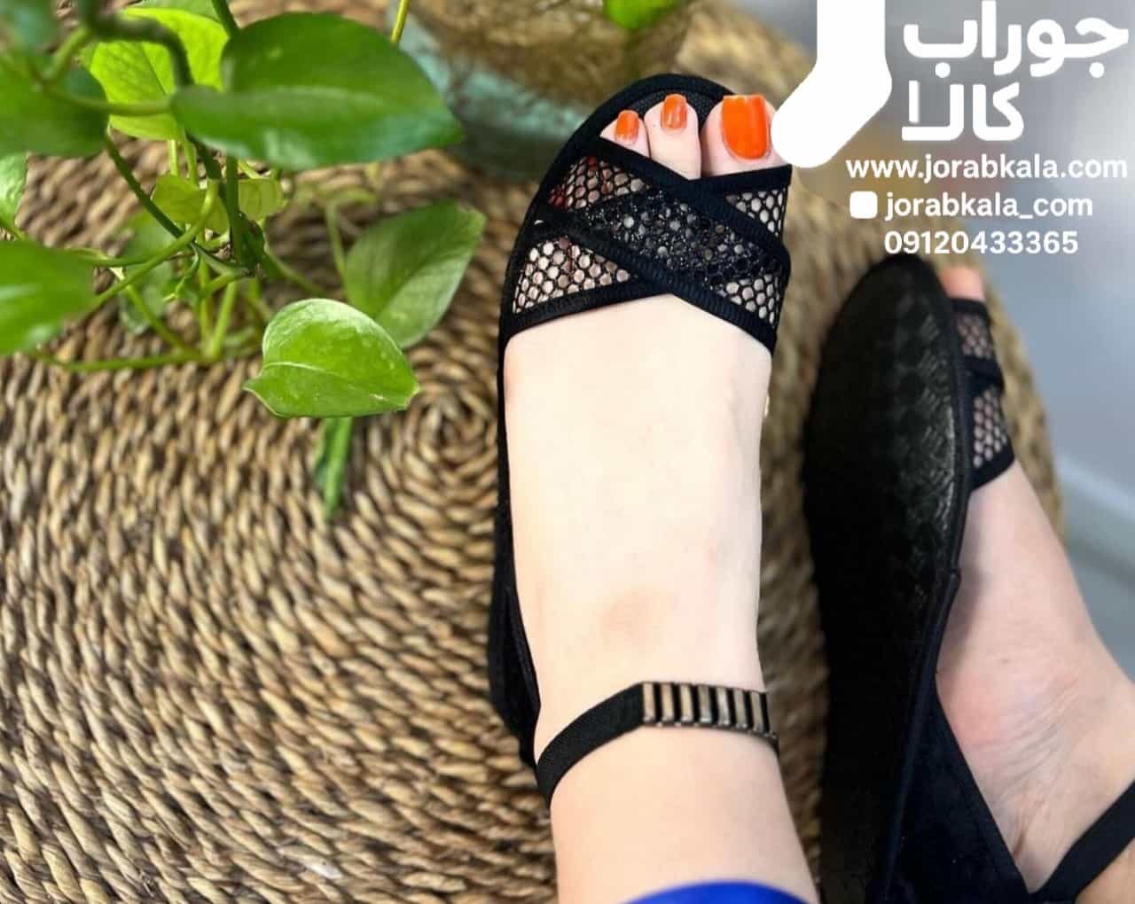 پاپوش کف چرم طرح ضربدری زنبوری جلوباز بنددار