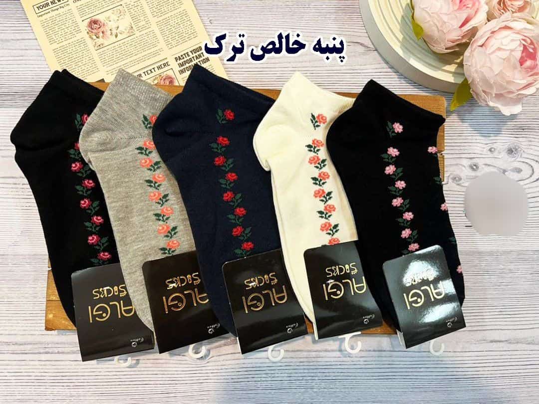 جوراب مچی زنانه نخ پنبه ترک طرح رز ترک