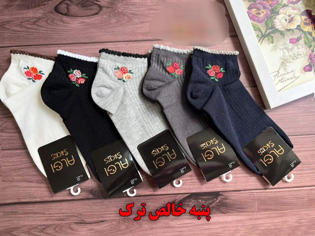 جوراب مچی زنانه نخ پنبه ترک طرح رز ترک